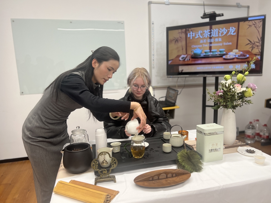 李龙第一次参加茶文化活动,就主动挑战工夫茶冲泡的高难度版本。在英子的指导下,他慢慢掌握了“三点一线、手腕下压”的技巧,成功冲泡出一杯香茗,脸上满是成就感。他表示,自己一直对中国茶文化感兴趣,“国外只有红茶和绿茶,但中国有很多茶类,很有意思。”